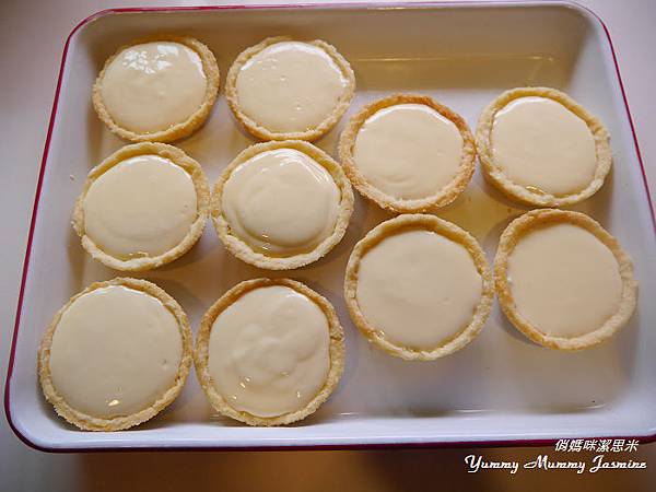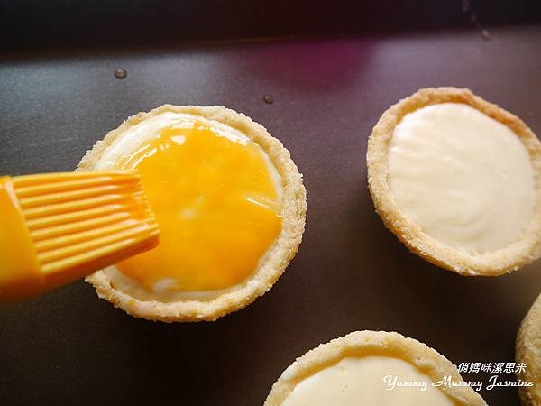 16. 內餡倒入塔皮中,放到冷凍約1.5小時即可。拿出後刷上蛋黃液(未在食譜內)