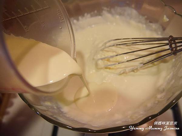 4. 倒入蛋與牛奶的混合液。